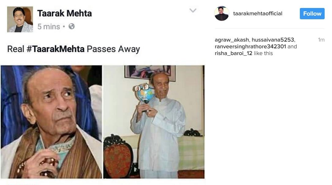 Gujarati writer and Padma Shree Tarak Mehta ji passes aways. May his soul rest in peace.