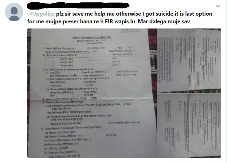 The girl had filed a complaint at the Jarcha police station in Uttar Pradesh on July 10, but nothing came out of it. On Sunday, she tweeted the FIR copy to Uttar Pradesh Police and threatened to commit suicide if no action is taken.